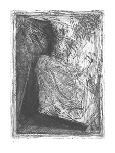 Frau im Raum (Sitzende im Cager); 1980; Maße: 32 x 23 cm; Graphik: Radierung auf Büttenpapier; Auflage: 15; Druckinitiale r.u. "A"; Reg. Nr.: R80 - 29/02