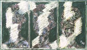 Triptychon - Porträt II; 1980; Maße: 50 x 88 cm; Gemälde: Misch-/Schabetechnik (Öl/ Acryl) auf grundierter Türplatte; sign. r.u."A."; Erbeng. Arndt - Reg. Nr.: B80 - 28/19