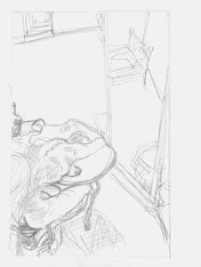 Die Trinkerin; 1980; Maße: 38 x 36 cm; Graphik: Handzeichnung; Bleistift auf Zeichenpapier (Skizze zum gleichnamigen Gemälde); Erbeng. Arndt - Reg. Nr.: Z80 - 03/27