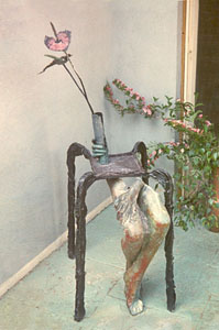 Persiflage mit Frauenbeinen; 1980; Maße: H.: 130 cm; Figurales Objekt: Polyester eingefärbt; Naturabformungen mittels Gipsbinden; Erbeng. Arndt - Reg. Nr.: P80 - 80/24