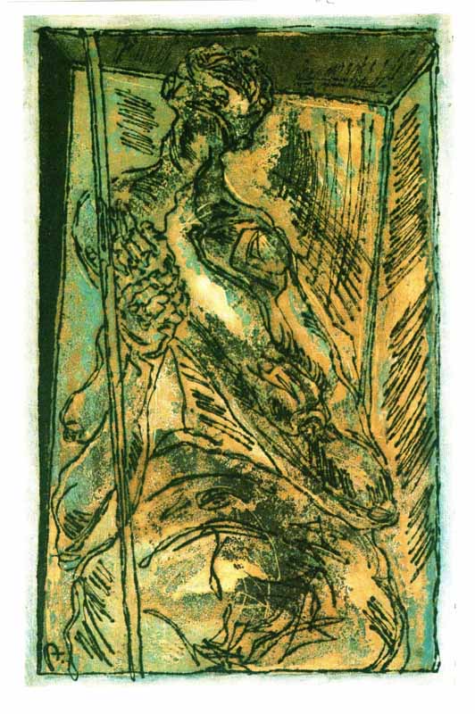 Die Schmerzhafte; 1981; Maße: 44 x 28 cm,Druckgraphik: Farbradierung auf Büttenpapier; 2 Platten (Kupfer/Eisen)