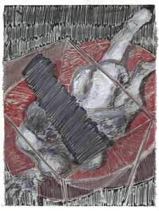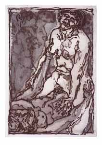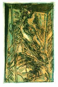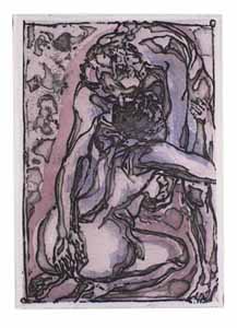 Die Schmerzhafte; 1981; Maße: 44 x 28 cm, Druckgraphik: Farbradierung auf Büttenpapier; 2 Platten (Kupfer/Eisen); Auflage 50; Druckinitiale l.u. A.; Reg. Nr.: R 81 - 29/05