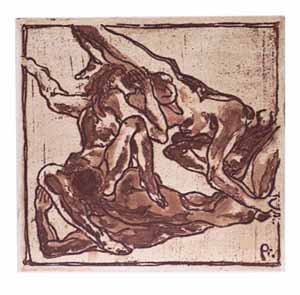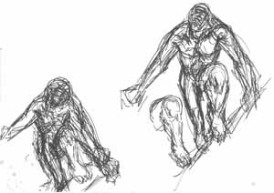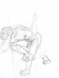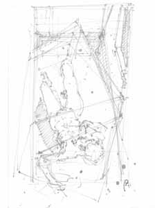 Der Gestürzte; 1981; Maße: 33 x 46 cm, Graphik: Zeichnung; Bleistift/ Tusche auf Zeichenpapier; Erbeng. Arndt - Reg. Nr.: E 81 - 19/26