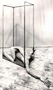 Der Gestürzte (Liegender im Cager); 1981; Maße: H.: 160 cm, Figurales Objekt: Polyester, (Fassung 1981/82 nochmals geändert 1988, siehe dort; Erbeng. Arndt - Reg. Nr.: C 81 - 80/22