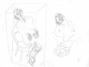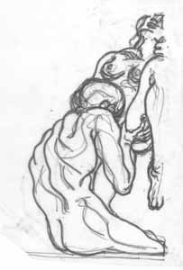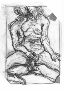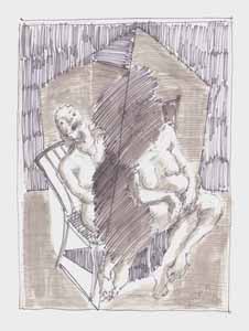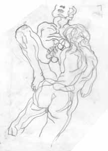 Flehen soll Sie; 1981; Skizze zur Eros-Reihe; Maße: 19 x 13 cm, Graphik: Zeichnung; Bleistift/ Tusche auf Transparentpapier; Erbeng. Arndt - Reg. Nr.: E 81 - 30/09f