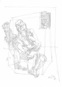 Sitzender; 1981; Maße: 56 x 39 cm, Graphik: Zeichnung; Bleistift/ Tusche auf Zeichenpapier; Erbeng. Arndt - Reg. Nr.: E 81 - 03/09