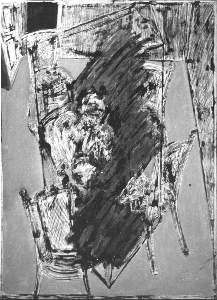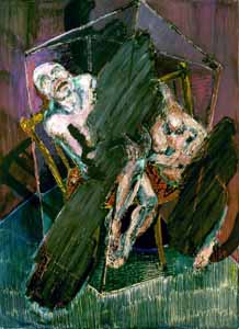 Kauernder mit leeren Stühlen; 1981; Maße: 206 x 150 cm, Gemälde: Mischtechnik (Öl und Acryl) auf grundierter Tischlerplatte; Erbeng. Arndt - Reg. Nr.: B 81 - 80/05