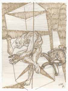 Der Aussteiger-Variation; 1981; Maße: 48 x 36 cm, Graphik: Zeichnung; Bleistift/ Tusche auf Zeichenpapier; sign. u. dat. l.u. 5.05.81, A.; Erbeng. Arndt - Reg. Nr.: Z 81 - 02/16