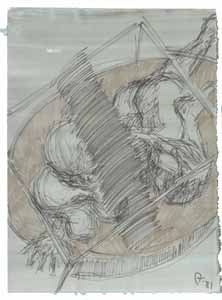 Amors Finger; 1981; Skizze zur Eros-Reihe; Maße: 19 x 13 cm, Graphik: Zeichnung; auf Büttenpapier; Reg. Nr.: R 81 - 30/09aa