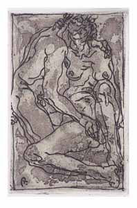 Cahieb I; 1981; Maße: 19 x 12 cm, Druckgraphik: Farbradierung auf Büttenpapier; 2 Platten (Hoch- und Tiefdruck, Kupfer/Eisen); Auflage 50 davon 40 für Kassette Eros Reihe; Druckinitiale r.u. A.; Reg. Nr.: R 81 - 27/25