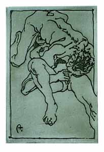 Liebesspiele ; 1981; Skizzen zur Eros-Reihe; Maße: 59 x 36 cm, Graphik: Zeichnung; Bleistift/ Tusche auf Zeichenpapier; Erbeng. Arndt - Reg. Nr.: E 81 - 03/13