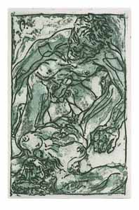 Cahieb II; 1981; Maße: 19 x 12 cm, Druckgraphik: Farbradierung auf Büttenpapier; 2 Platten (Hoch- und Tiefdruck, Kupfer/Eisen); Auflage 50 davon 40 für Kassette Eros Reihe; Druckinitiale r.u. A.; Reg. Nr.: R 81 - 27/27