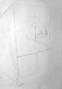 Der Aussteiger; 1981; Maße: 47 x 34 cm, Graphik: Zeichnung; Bleistift/ Tusche auf Zeichenpapier; sign. u. dat. r.u. 5.05.81, A.; Erbeng. Arndt - Reg. Nr.: Z 81 - 20/27