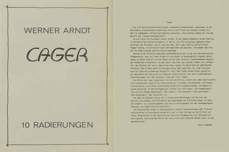 Einlegeblatt mit Erläuterungen zur "Kleine Cager-Radierungen-Kassette"; 1982; Maße: 54 x 38 cm