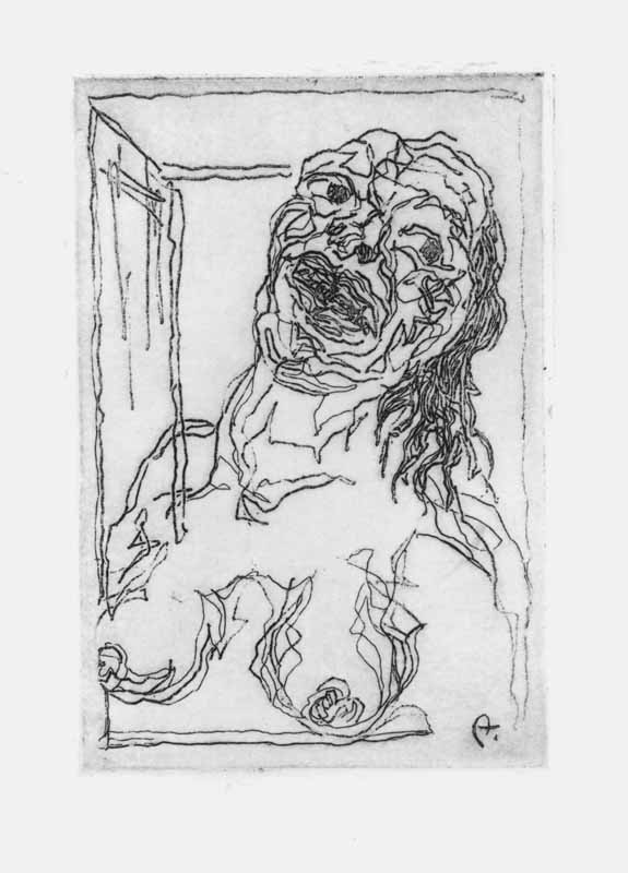 Kopf Cilly P.; Reihe "Kleine Cager-Radierungen", Blatt XVI; 1982; Maße: 12 x 8 cm; Druckgrafik: Radierung auf "BFK RIVES France oo" Büttenpapier; 1 Druckplatte
