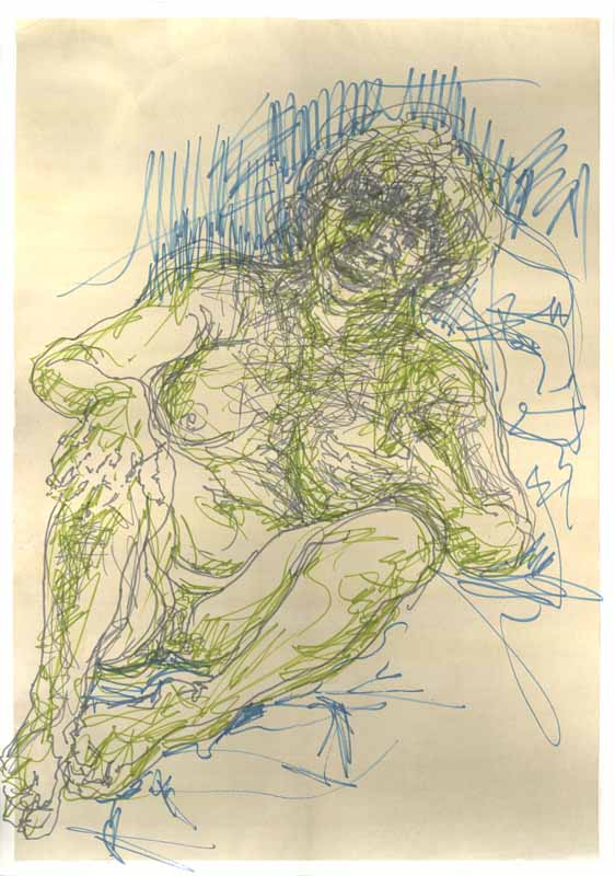 Weibl. Akt, sitzend; 1982; Maße: 57 x 41 cm; Grafik: Handzeichnung;Tusche/ Acryl auf Zeichekarton