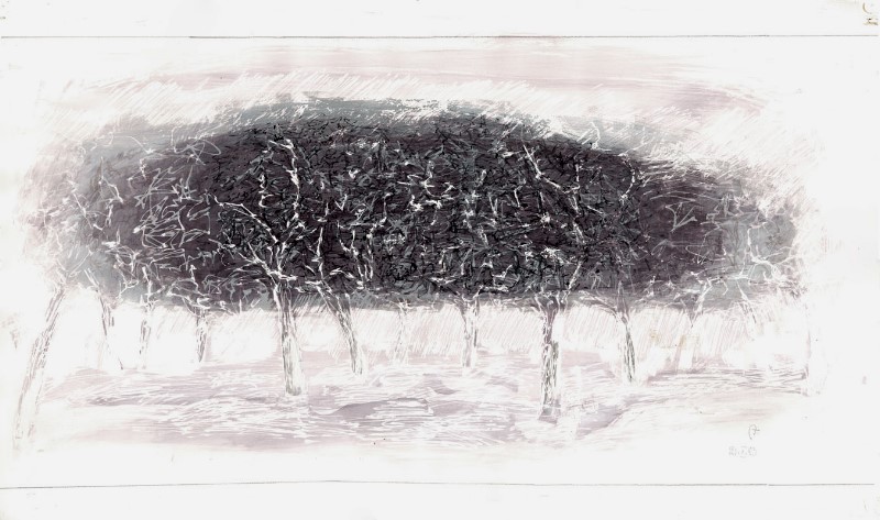 Orange C, Variation; 1983; Maße: 38 x 70 cm, Grafik: Handzeichnung; Tusche/ Acryl auf Hammer 4R Zeichenkarton
