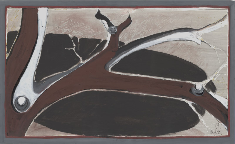 Baum vor dunklem See; 1983; Maße: 36 x 59 cm, Grafik: Handzeichnung; Tusche/ Acryl auf Zeichenkarton