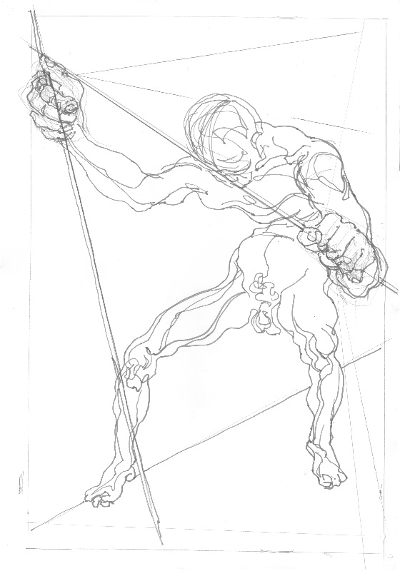Der Aussteiger; 1983; Maße: 68,5 x 46 cm, Grafik: Handzeichnung; Bleistift/Tusche auf Zeichenpapier