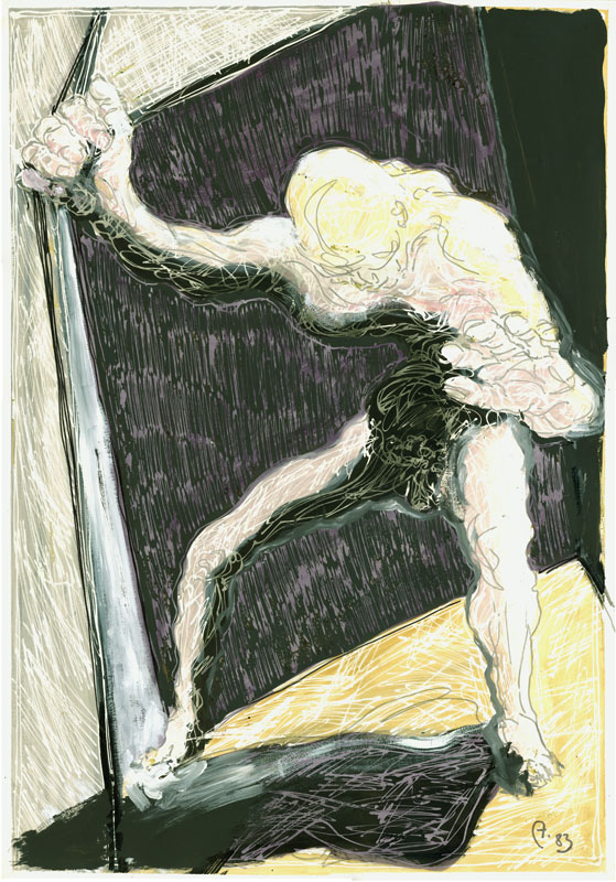 Der Aussteiger; 1983; Maße: 73 x 51 cm, Grafik: Handzeichnung; Tusche/ Acryl auf Zeichenkarton