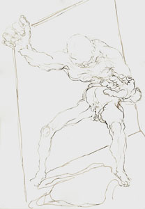 Der Aussteiger; 1983; Maße: 68,5 x 46 cm, Grafik: Handzeichnung; Bleistift/Tusche auf Zeichenpapier; Erbeng. Arndt - Z83 - 19/13