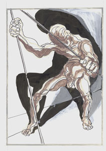 Der Aussteiger mit schwarzem Schatten; 1983; Maße: 65 x 46 cm, Grafik: Handzeichnung; Tusche/ Acryl auf Hammer 4R Zeichenkarton; Erbeng. Arndt - Z83 - 06/05