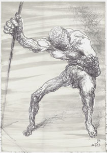 Cager, männlich mit schwarzer Seite; 1983; Maße: 69 x 41 cm, Grafik: Handzeichnung; Tusche auf mit Schwamm eingefärbtem Zeichenkarton; Sign. u. dat. r. u. "A. 83"; Erbeng. Arndt - Z83 - 19/31