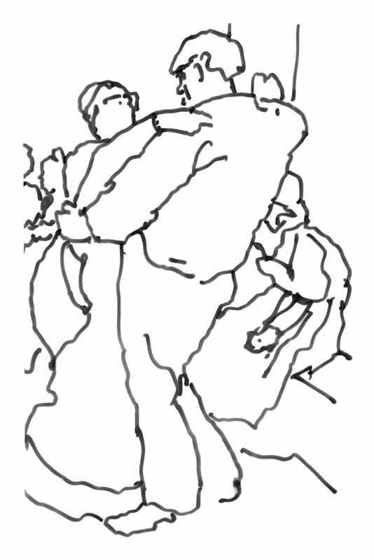 Tanzpaar; 1984, Maße: 13,0 x 09,0 cm; Grafik: Handzeichnung, Skizze zum Gemälde "Kirchweih"; Tusche auf Transparentpapier