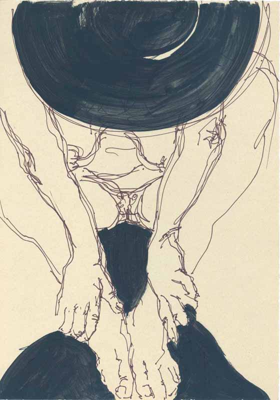 Sitzender weiblicher Akt mit schwarzem Hut; 1984, Maße: 30 x 21 cm; Grafik: Handzeichnung, Tusche auf grauem Zeichenkarton
