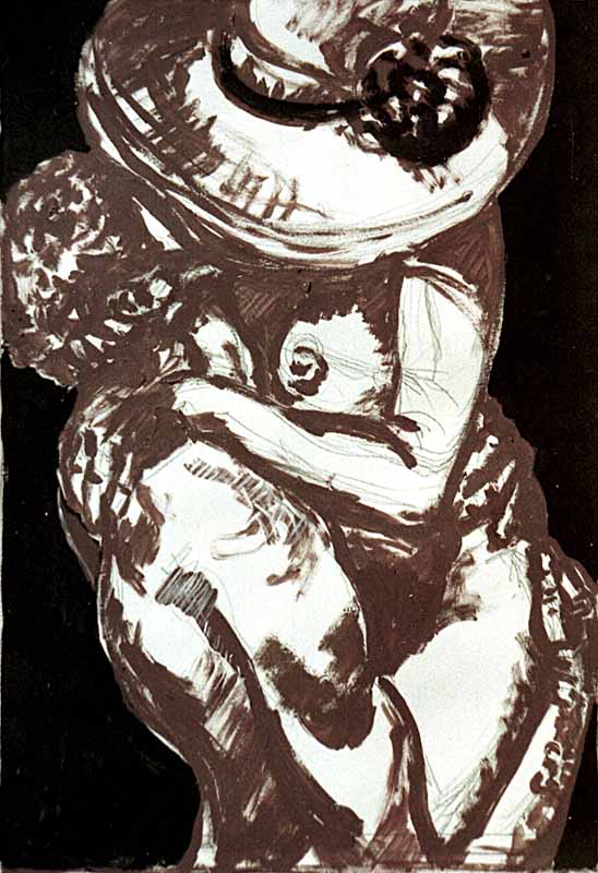 Der Kuß, 1986, 62 x 43 cm, Zeichnung: Tusche/Acryl auf Schoellers Hammer 4R Zeichenkarton
