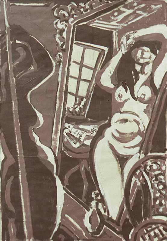 Frau vor dem Spiegel, 1986, 61 x 42 cm, Zeichnung: Tusche/Acryl/Tempera auf Zeichenkarton