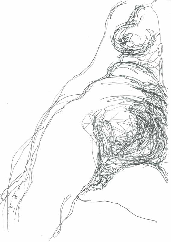 Weiblicher Akt, halbliegend quer, 1986, 30 x 21 cm Zeichnung: Tusche auf Zeichenpapier