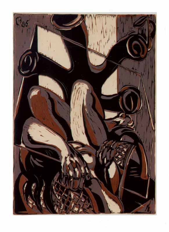 Frau im Baum, 1986, 64 x 45 cm Druckgrafik: Linolschnitt auf Büttenpapier, Aufl.: 25, 4 Platten