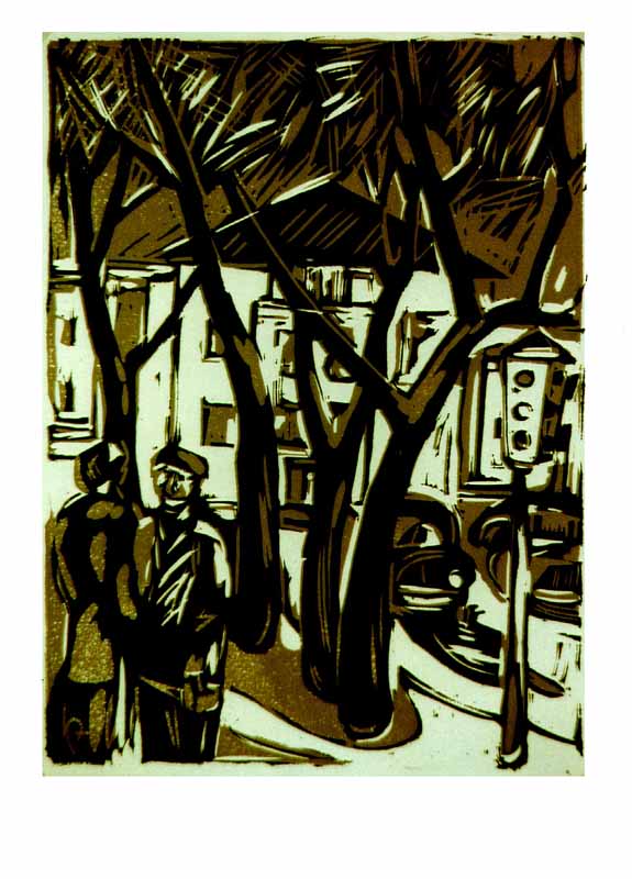 Bäume in der Stadt, 1986, 30 x 21 cm Druckgrafik: Linolschnitt auf Büttenpapier, Aufl.: 25, 3 Platten