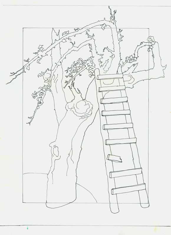 Kleiner Apfelbaum mit Leiter, 1986, 31 x 23 cm Zeichnung: Entwurf, Bleistift auf Schoellers Hammer 4R Zeichenkarton