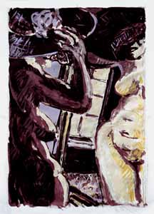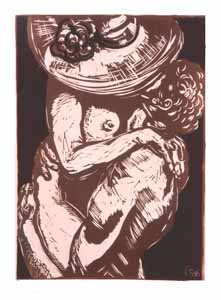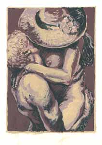 Der Kuß, 1986, Maße: 61 x 42 cm, Druckgrafik: Linolschnitt auf Büttenpapier, Aufl.: 10, 3 Platten, Druckinitiale ru "A.86", Reg.Nr.: L 86 - 02 / 08