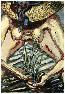 Lesende am Strand, 1986, Maße: 64 x 46 cm, Zeichnung: Tusche/Acryl auf Schoellers Hammer 4R Zeichenkarton, Erbeng. Arndt - Reg.Nr.: Z 86 - 05 / 29