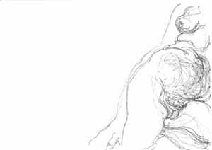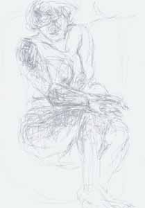 Der Kuß, 1986, Maße: 27 x 21 cm, Zeichnung: Entwurf, Bleistift auf Kartendruckpapier, Erbeng. Arndt - Reg.Nr.: E 86 - 04 / 06