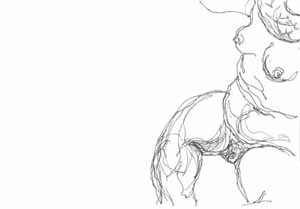 Weiblicher Akt, halbliegend quer, 1986, Maße: 21 x 30 cm Zeichnung: Tusche auf Zeichenpapier, Erbeng. Arndt - Reg.Nr.: E86- 04 / 15