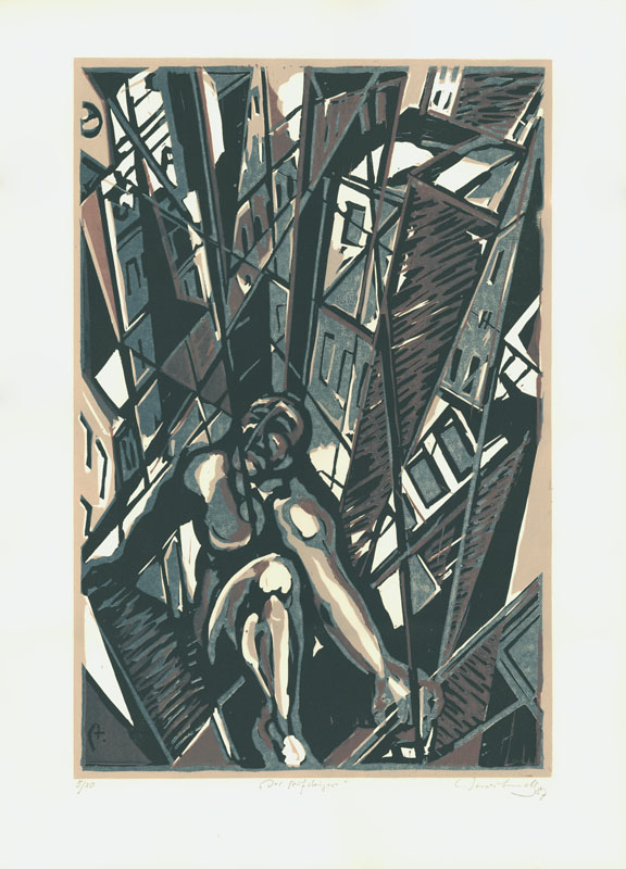 Der Aufsteiger, 1987, 61 x 40,5 cm, PM: 73 x 53 cm, Druckgrafik: Linolschnitt auf ARCHE France Büttenpapier
