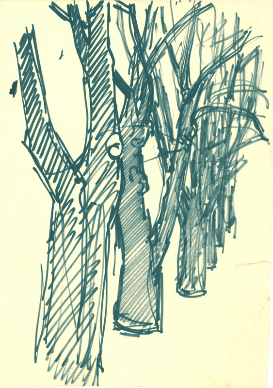 Baumallee, 1987, 28 x 20 cm, Zeichnung: Entwurf in Tusche auf Zeichenkarton