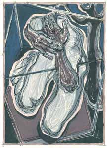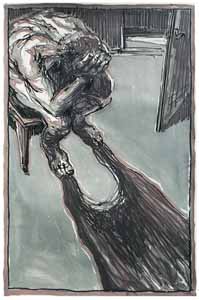 Sitzender mit Kopf in den Händen (Der Einsame), 1988, 68 x 45 cm, Zeichnung: Tusche/Acryl/Tempera auf Schoeller Hammer 4R Zeichenkarton, Erbeng. Arndt - Reg.Nr.: Z 88 - 06 / 08