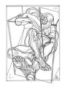 Dreibein, 1988, 60 x 42 cm, Zeichnung: Tusche/Acryl/Tempera auf Schoeller Hammer 4R Zeichenkarton, Erbeng. Arndt - Reg.Nr.: Z 88 - 06 / 09