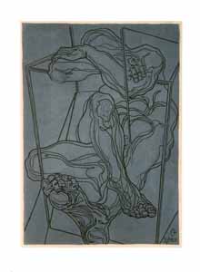 Dreibein, 1988, 60 x 42 cm, Druckgrafik: Linolschnitt auf Büttenpapier, Aufl.: 10, 3 Platten, Druckinitialen ru "A.IV/1988" Reg.Nr.: L 88 - 02 / 04