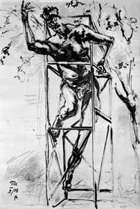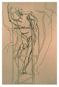 Cager mit Baum, 1988, 60 x 43 cm, Zeichnung: Entwurf in Tusche auf Schoeller Hammer 4R Zeichenkarton, Erbeng. Arndt - Reg.Nr.: E 88 - 04 / 05