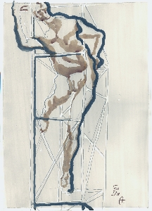 Sitzender mit Kopf in den Händen (Der Einsame), 1988, 69 x 46 cm, Zeichnung: Tusche auf Schoeller Hammer 4R Zeichenkarton, sign. u. dat. ru "10.Febr.1988 A.", Erbeng. Arndt - Reg.Nr.: Z 88 - 16 / 06