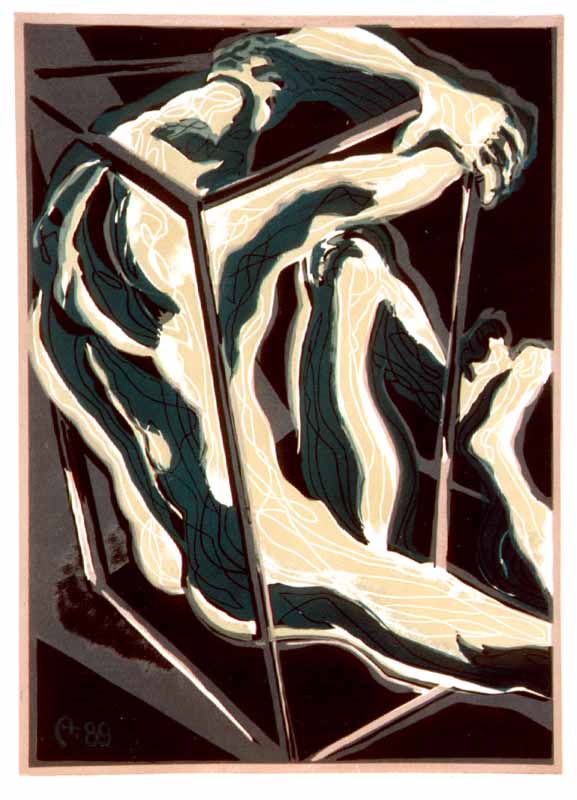 Cager männlich grün, 1989, 62,5 x 44,5 cm, Druckgrafik: Linolschnitt auf Büttenpapier