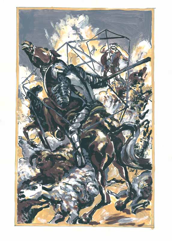 Don Quijote im Cager, 1990, 57 x 36 cm, PM: 62,5 x 45 cm, Zeichnung: Tusche/Acryl auf Felix Schoeller Turm Zeichenkarton