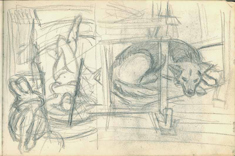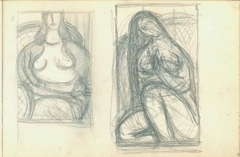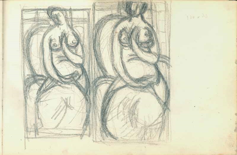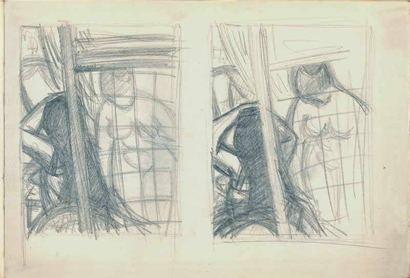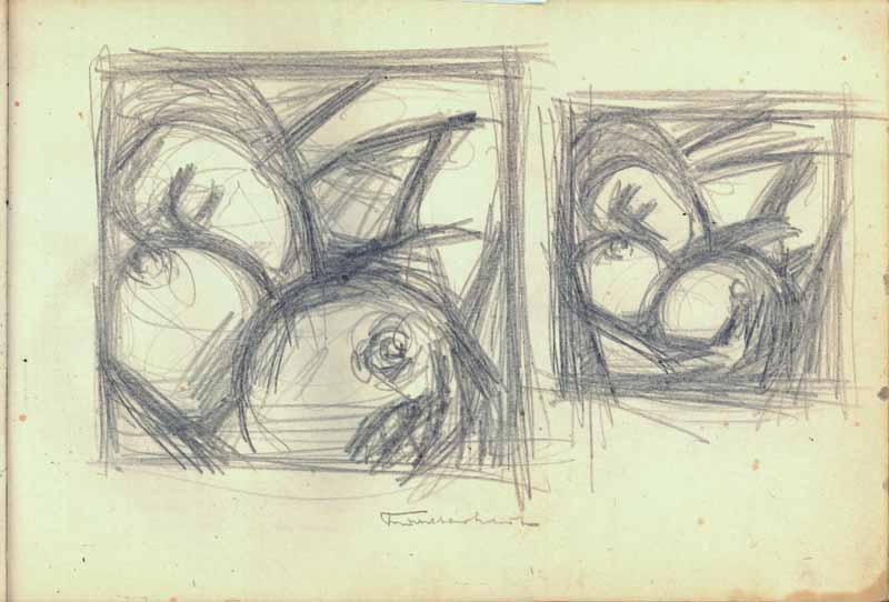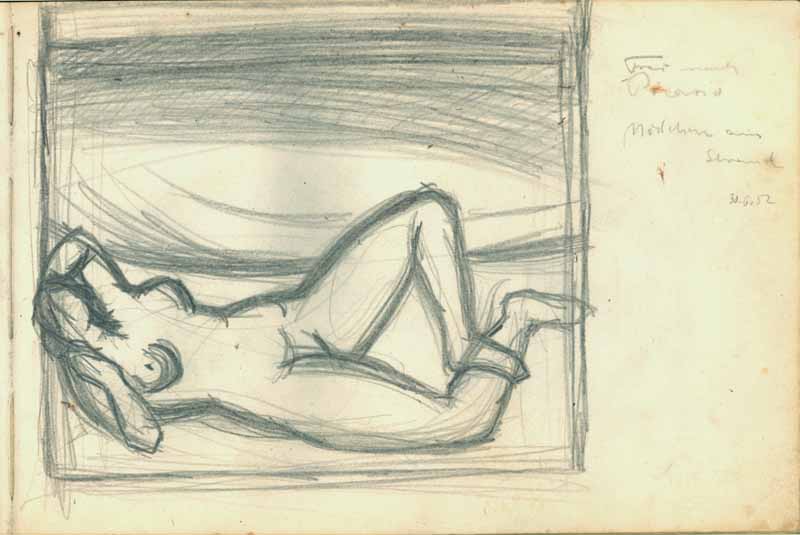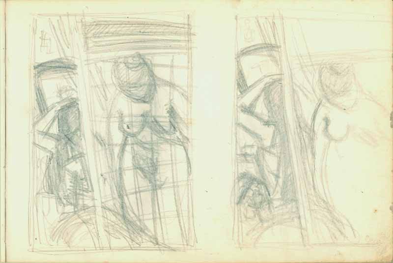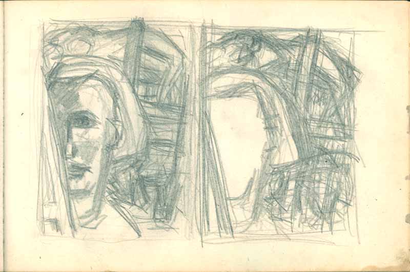 Das Skizzenbuch 3 umfaßt ca. den Zeitraum zwischen 1950 bis 1953. Es beinhaltet Zeichnungen in Bleistift und Tusche sofern nicht anders vermerkt. Es ist 33,0 x 22,5 cm groß. |