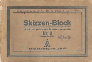 stammt aus seiner Schulzeit. Es beinhaltet Zeichnungen mit Bleistift. Es ist 12 x 19 cm groß (Höhe x Breite).